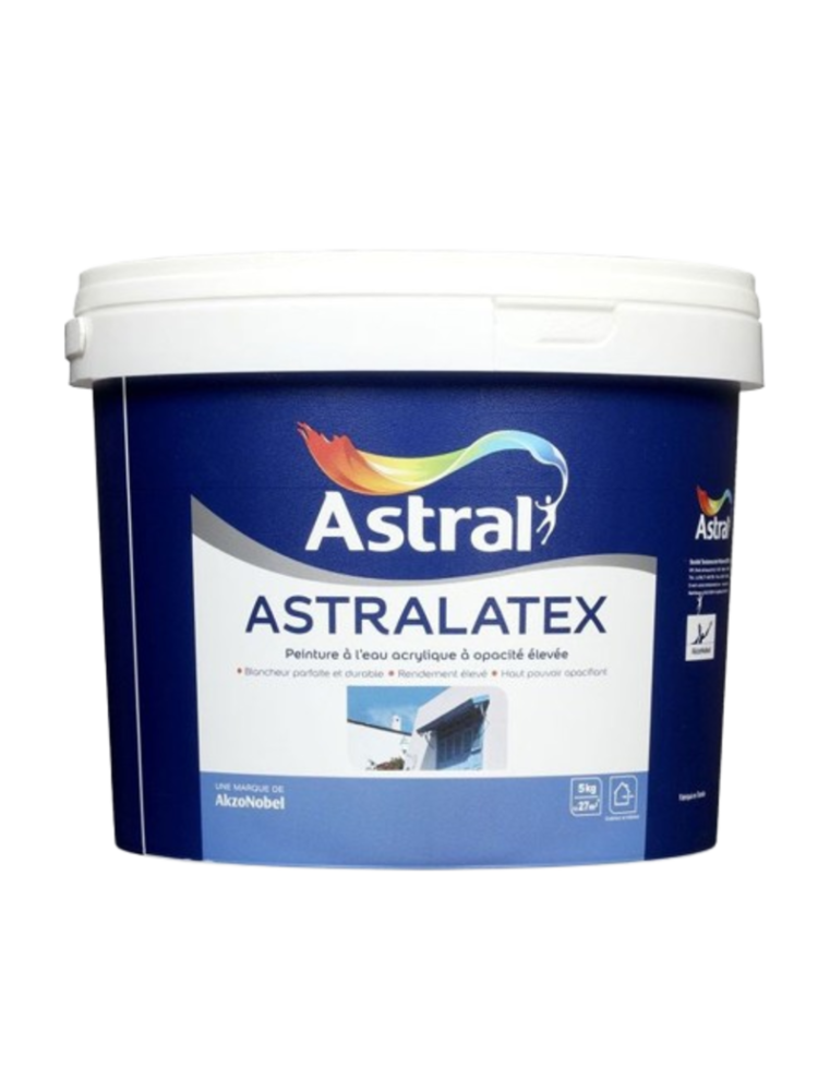 ASTRALATEX Blanc Mat 5KG est une peinture murale à base d’eau (acrylique) spécialement conçue pour les travaux de décoration intérieure. Sa finition mate offre un rendu élégant et uniforme, idéal pour masquer les petites imperfections des murs et plafonds.