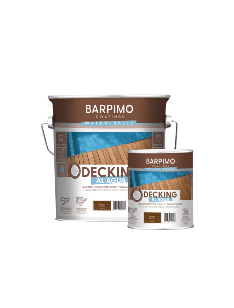 La Barpimo Decking Teck 4L est une lasure mate à base d’eau, spécialement conçue pour la protection des sols et terrasses en bois exposés aux intempéries.