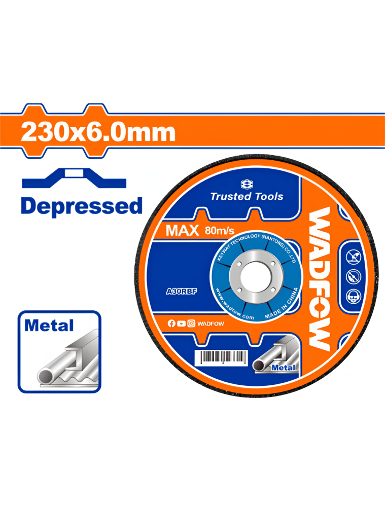 Diamètre : 230 mm – Épaisseur : 6,0 mm – Alésage central : 22,2 mm, standard 7/8″ – Matériau : abrasif spécialement conçu pour l’acier .