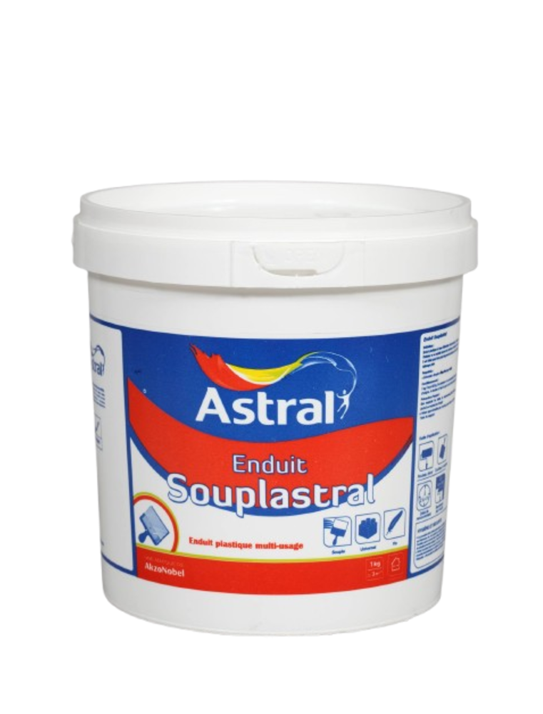 ENDUIT SOUPLE 1KG ASTRAL est un enduit de rebouchage et de finition conçu pour réparer les imperfections, fissures et trous sur les murs et plafonds intérieurs.