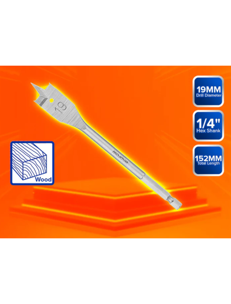 Mèche plate 19 mm – Queue hexagonale 1/4″ – Longueur totale 150 mm