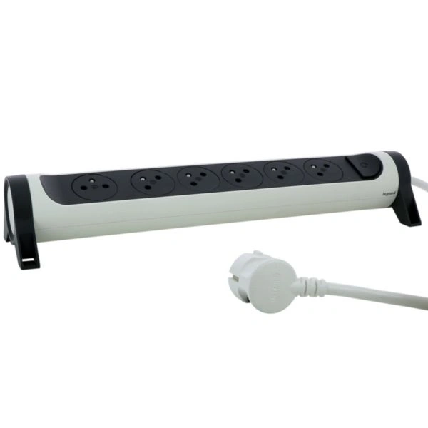 Multiprise Rotatif 6x2P+T 16A+Int+ cordon 1.5m – blanc et gris