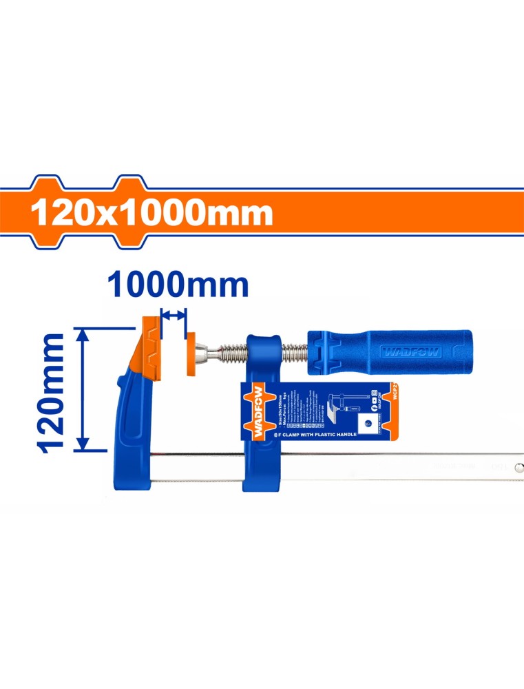 Modèle : WCP2125 – Ouverture maximale : 1 000 mm – Profondeur de serrage (saillie) : 120 mm – Vis de serrage : acier galvanisé avec manche ergonomique .