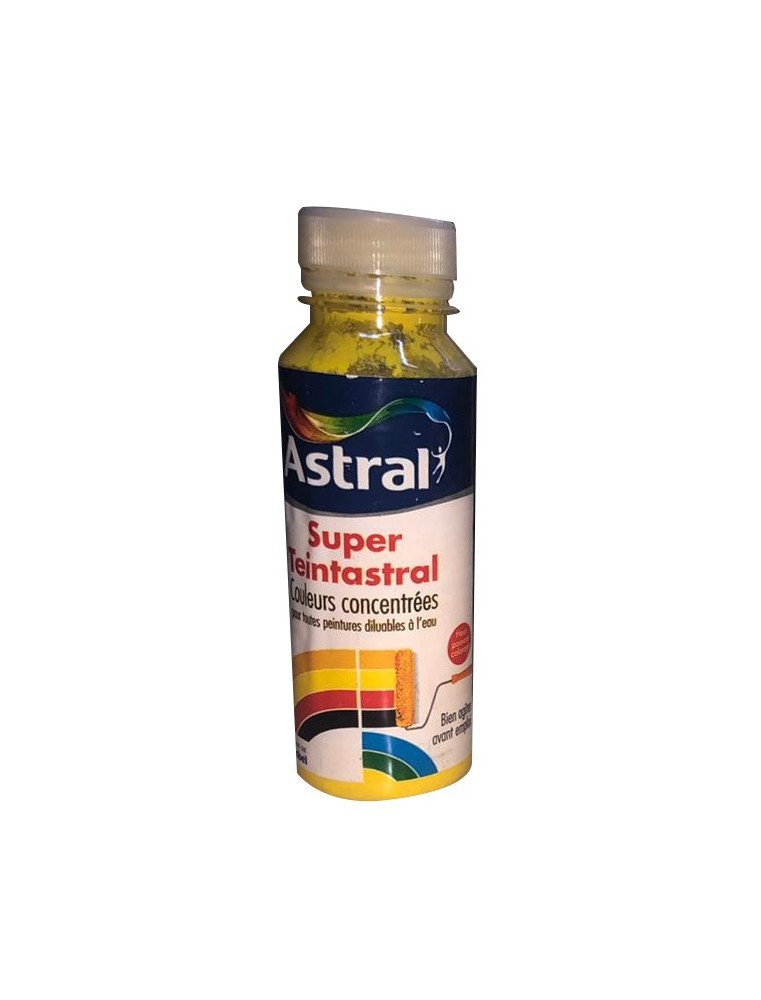 SUPER TEINTE Oxyde Jaune 0.100L Astral est un colorant concentré spécialement conçu pour teinter les peintures, enduits et mortiers. Sa teinte jaune oxyde intense apporte une coloration riche et durable, idéale pour personnaliser vos travaux de décoration et construction.