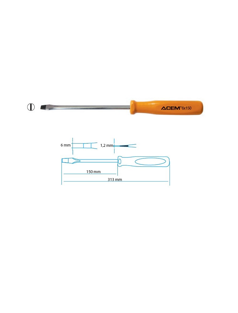 Type: Français – Largeur: 6 mm – Longueur : 150 mm – Lame: acier Chrome‑Vanadium (Cr‑V) – Embout : magnétisé – Manche : bi-matière ergonomique (plastique + grip caoutchouté), antidérapant.